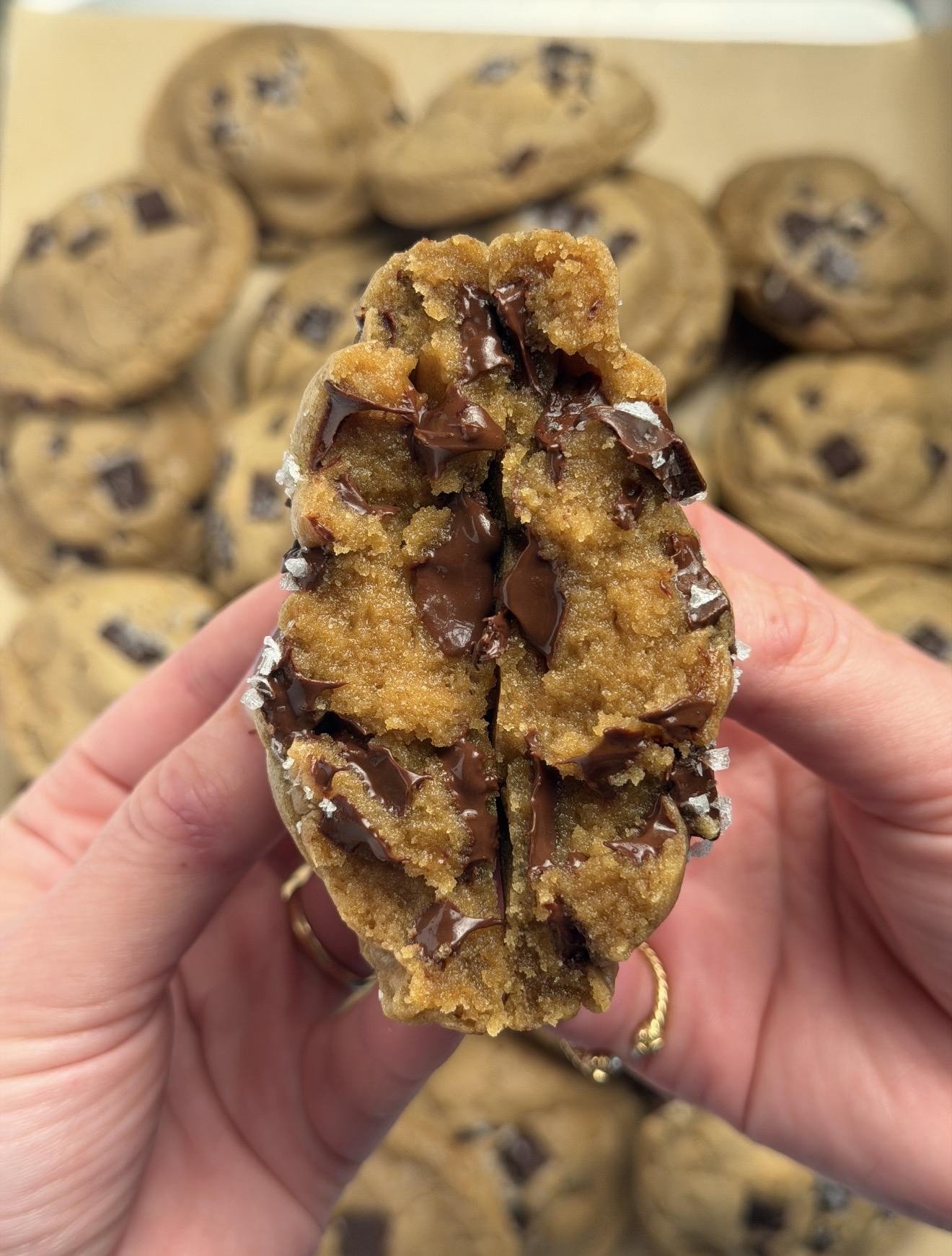 Butter is carefully browned to unlock a warm, nutty richness, then chilled overnight to deepen flavor. Baked until golden, each 2.5oz cookie delivers crisp edges, a thick, soft center, and rich, melty chocolate throughout.